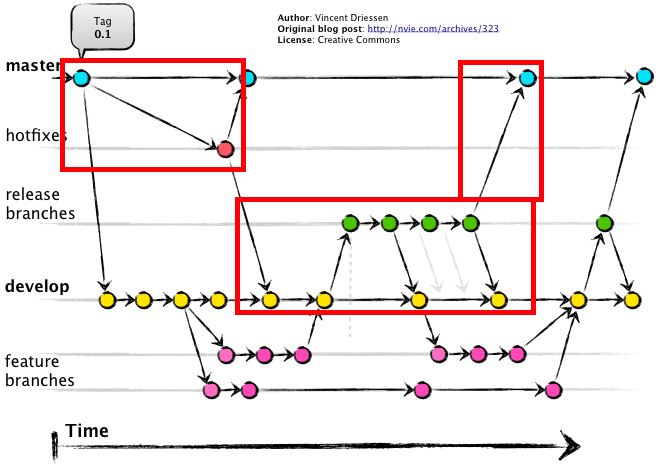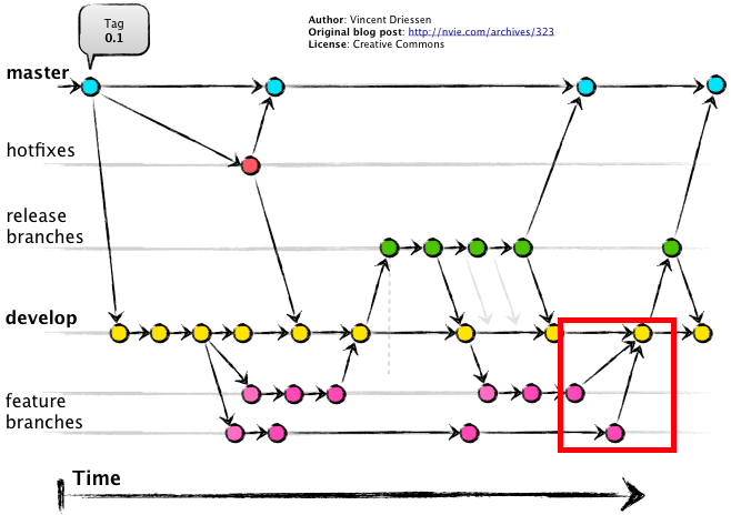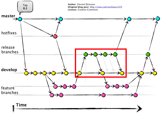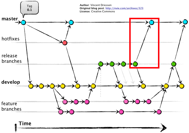 - release 브랜치가 안정화되면, develop 브랜치에 release 브랜치를 병합합니다.