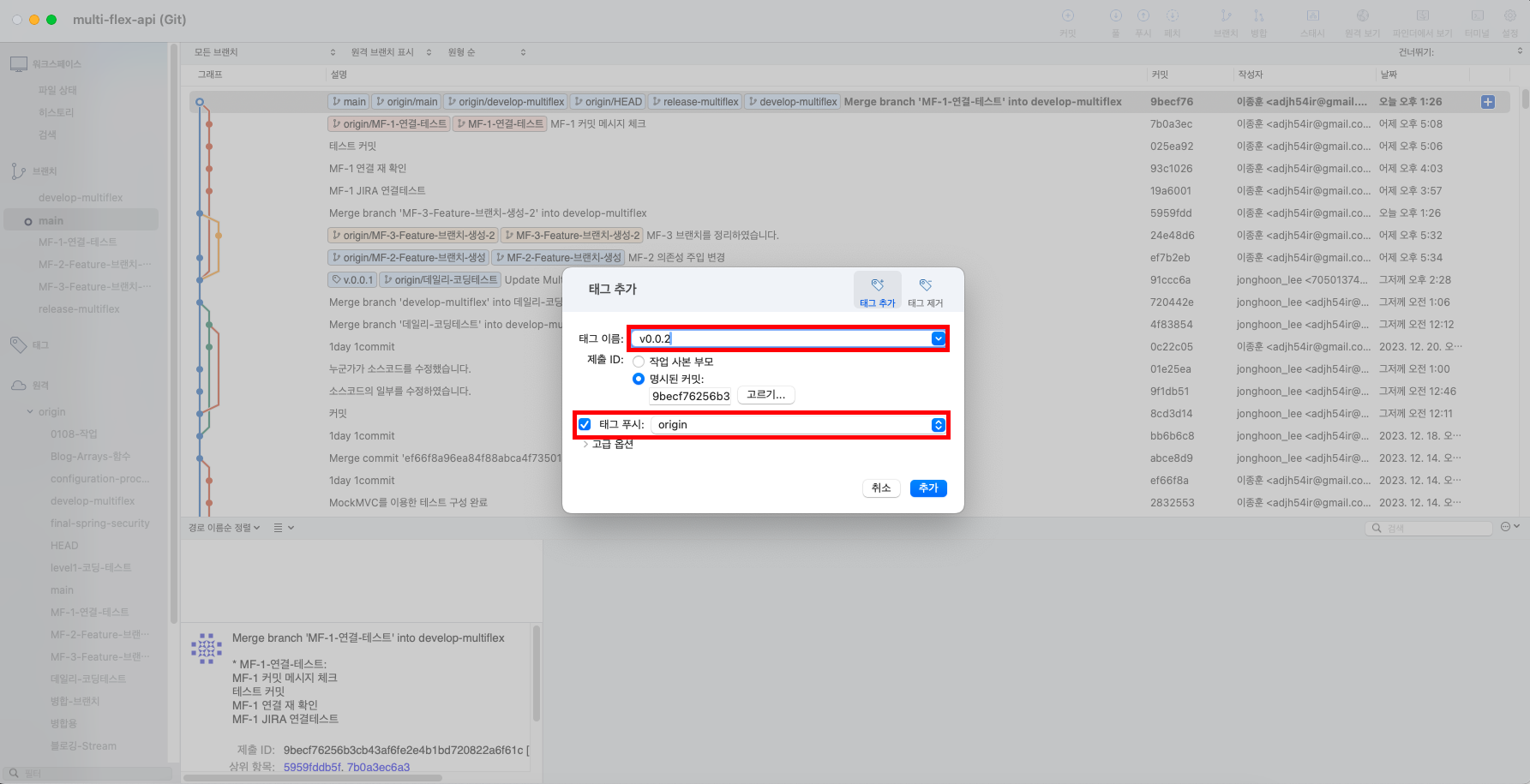 - 또한 릴리즈가 되는 버전에서는 태그를 추가합니다.