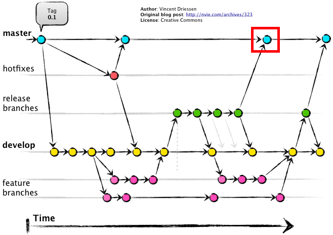 - 다음 릴리즈를 준비하기 위한 대기 브랜치로 새로운 버전을 릴리스하기 위한 소스코드가 대기 중입니다.