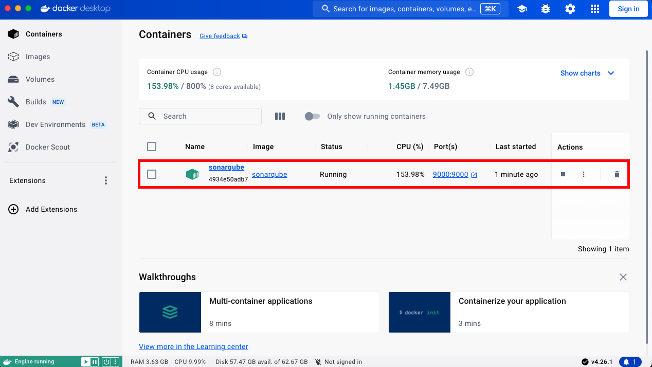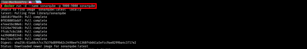 $ docker run -d --name sonarqube -p 9000:9000 sonarqube