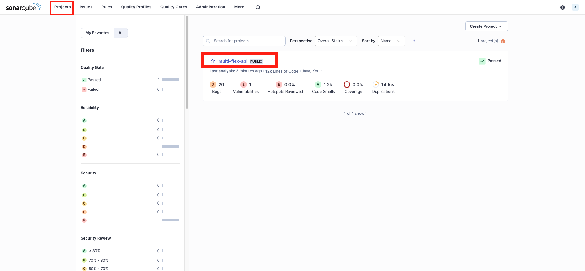 1. http://localhost:9000으로 접근하여 ‘Projects’ 탭을 선택하고 프로젝트를 선택합니다.