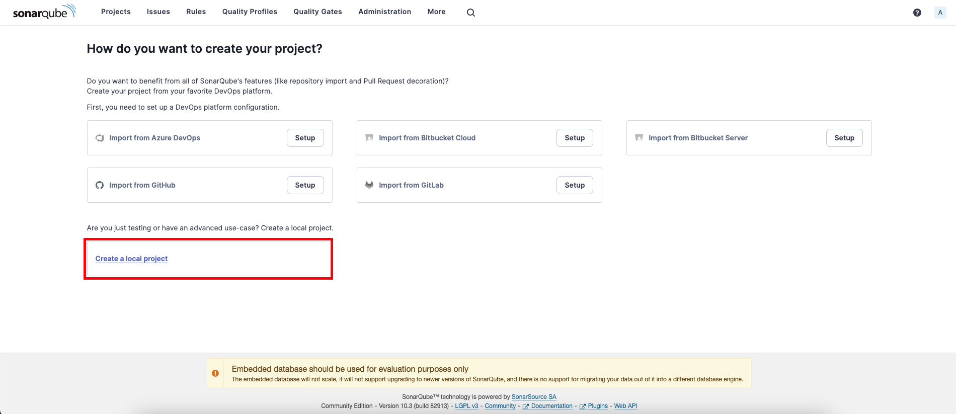 6. 로컬에서 테스트를 위해 ‘Create a local project’ 버튼을 눌러줍니다.