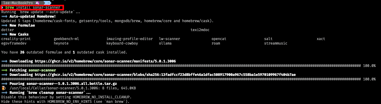 1. Homebrew에서 sonar-scanner를 설치합니다.