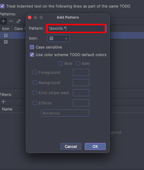 3. Editor 탭 - TODO 탭 - ‘todo’ pattern을 선택하고 ‘Add’ 버튼을 눌러줍니다.