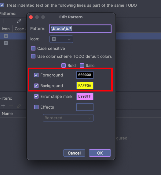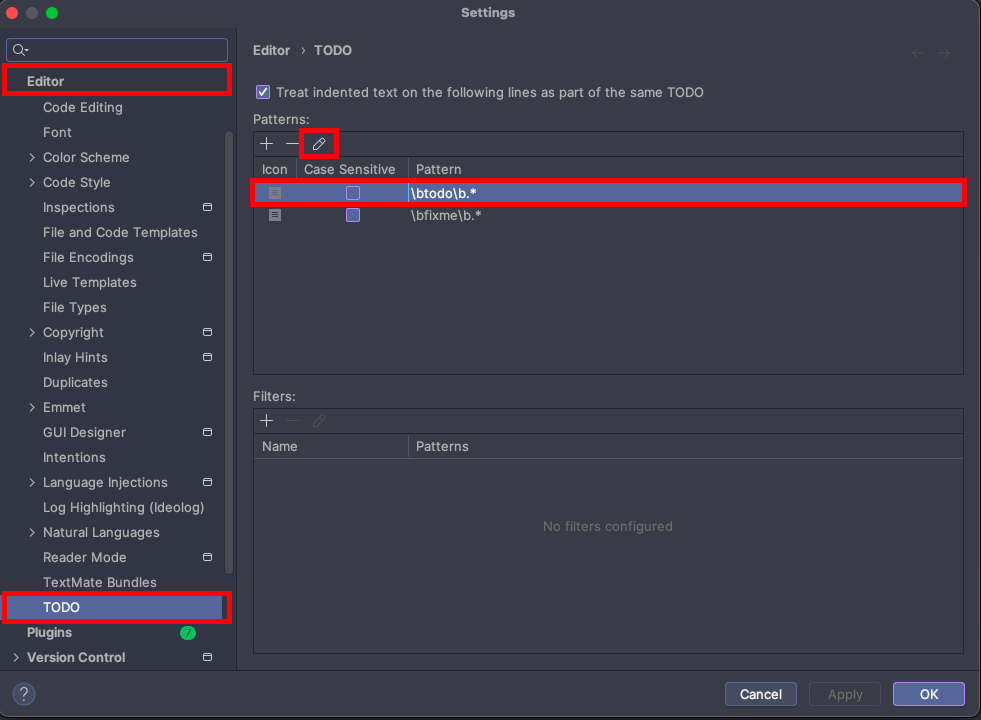 3. Editor 탭 - TODO 탭 - ‘todo’ pattern을 선택하고 ‘Edit’ 버튼을 눌러줍니다.