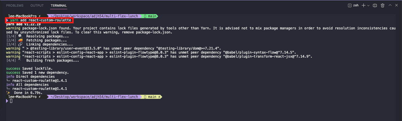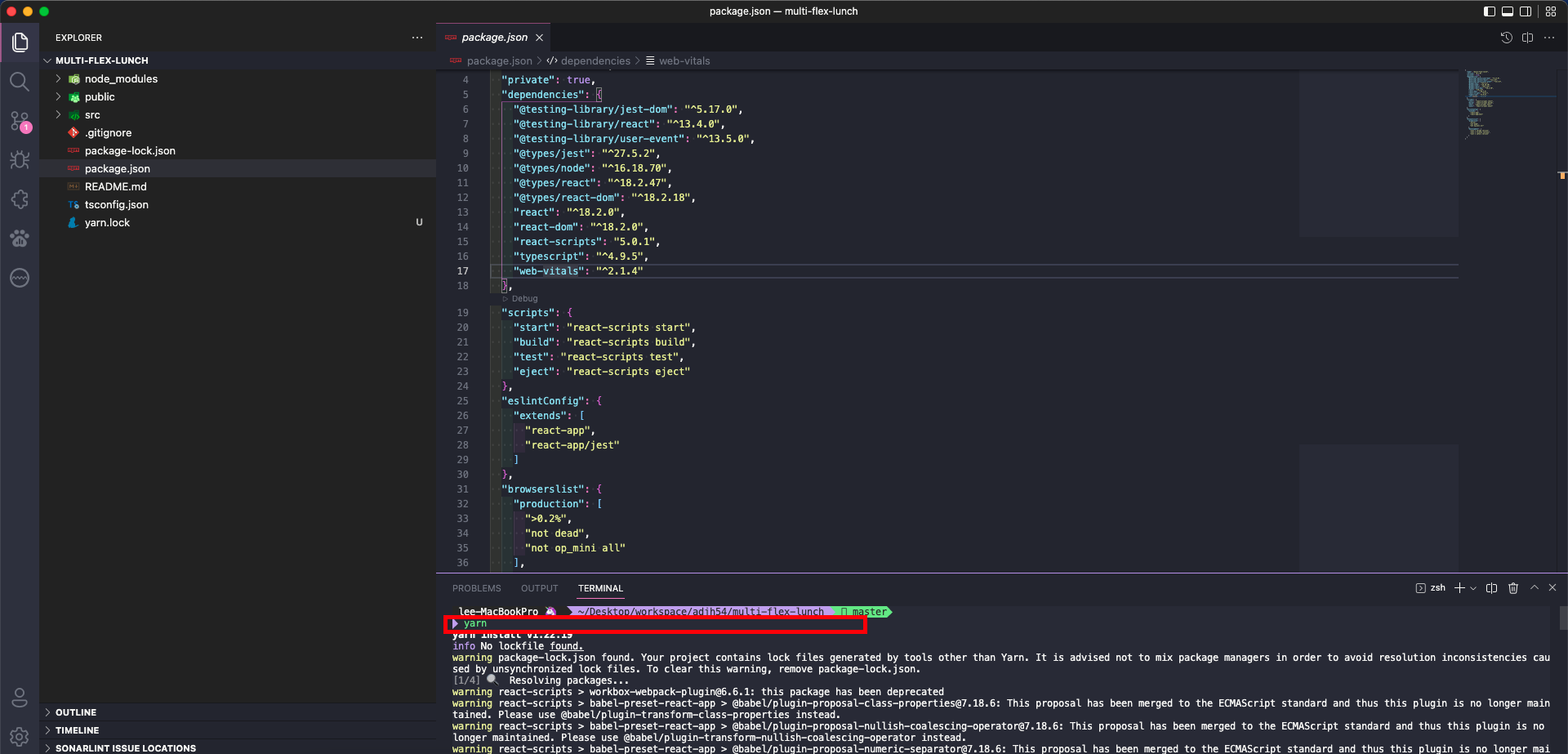 3. 패키지 매니저 yarn을 통해 초기 패키지를 설치합니다.