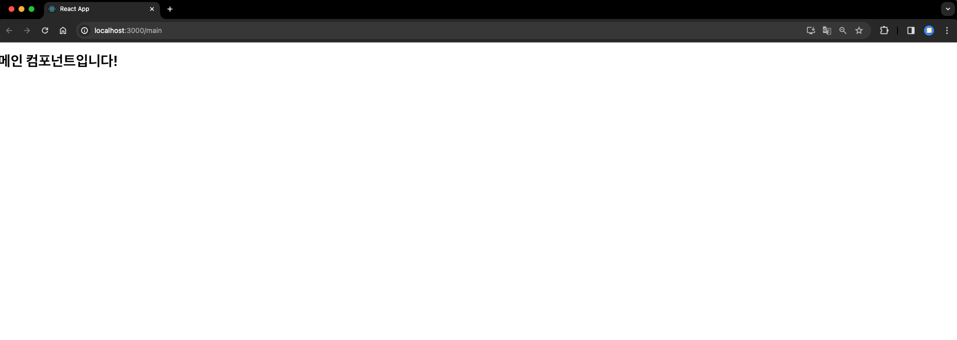 - 메인 페이지가 되는 컴포넌트입니다. 우선은 h1 태그로 텍스트만 출력되도록 구성하였습니다.