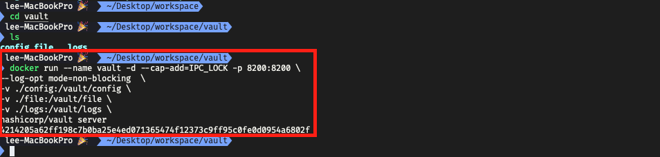 💡 [참고] Docker Vault 로컬 구성과정이 궁금하시면 아래의 글을 참고하시면 도움이 됩니다.