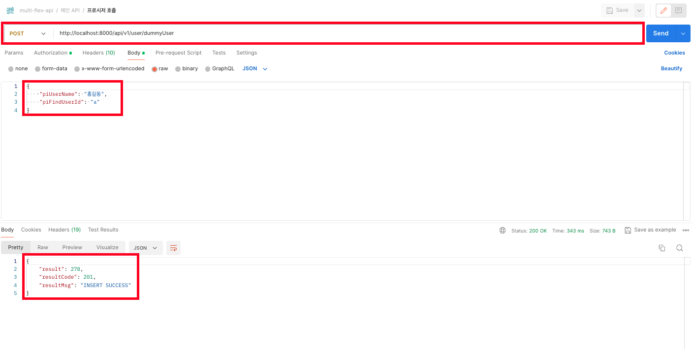 - /api/v1/user/dummyUser 엔드포인트로 HTTP Method POST를 이용하면 해당 API가 호출이 됩니다.