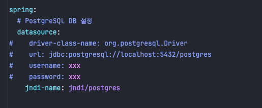 - spring-boot-starter-data-jdbc를 통해 PostgreSQL 데이터베이스와 통신을 합니다. 또한 JDBC 내장으로 DBCP를 포함하고 있습니다. - org.postgresql:postgresql를 통해 실제 데이터베이스를 연결하기 위한 JDBC 드라이버입니다.
