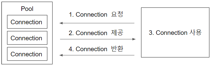 - 여러 개의 데이터베이스 연결(Connection)을 묶어두어 필요할 때마다 재사용할 수 있게 하는 기술을 의미합니다. - 이는 매번 새로운 연결을 생성하고 종료하는 대신 이미 생성된 연결을 재사용함으로써 자원을 효율적으로 사용할 수 있게 합니다.