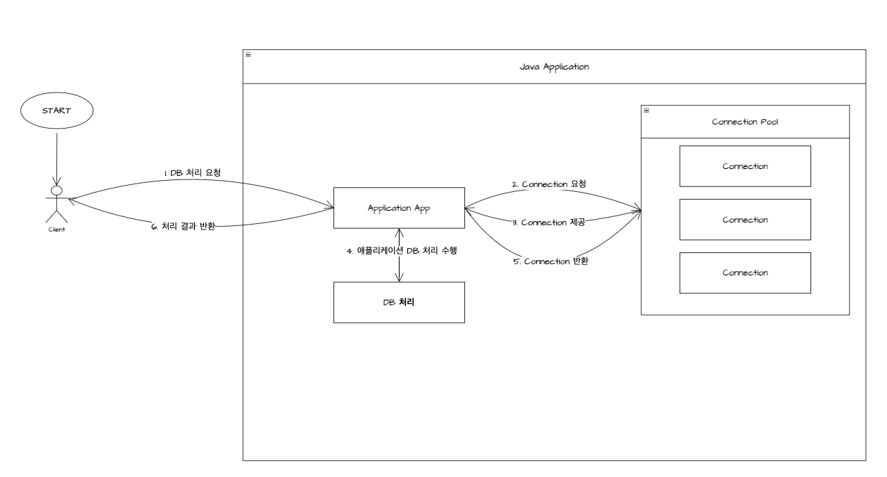 4. Connection Pool 구성 완료 - Connection Pool이 구성되면 애플리케이션은 필요할 때마다 Connection Pool에서 Connection 객체를 가져와서 사용할 수 있습니다.