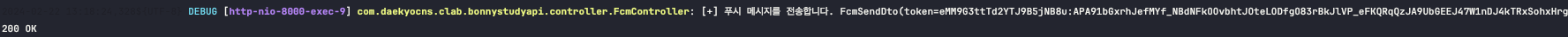 - 서버에서 FCM으로 전송한 데이터를 기반으로 FCM에서 푸시 메시지가 전송됨을 확인하였습니다.