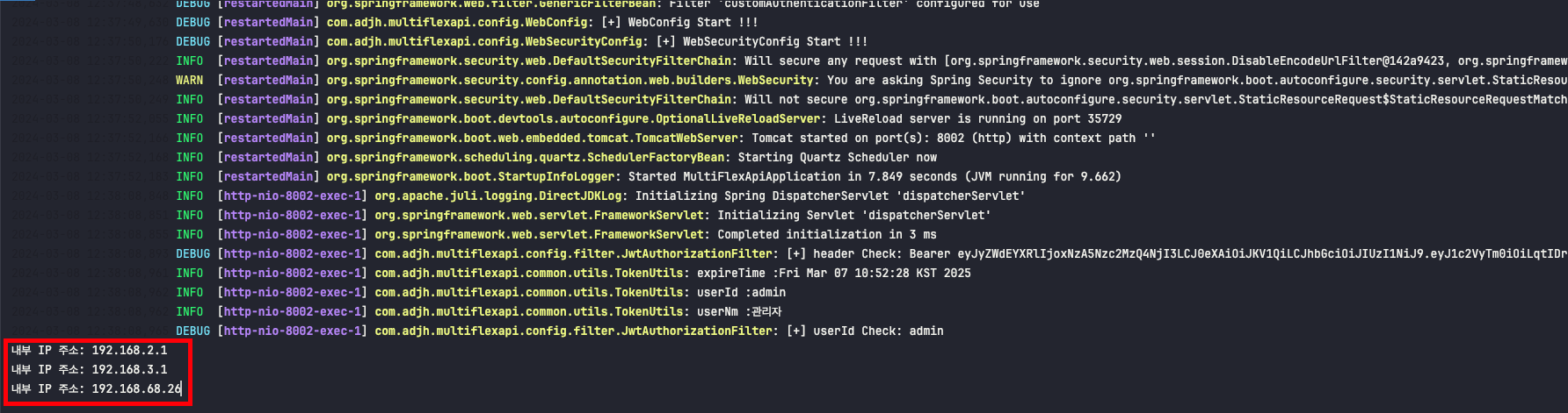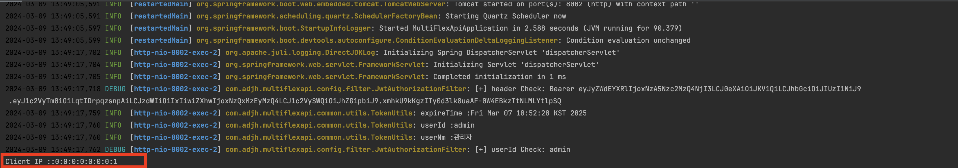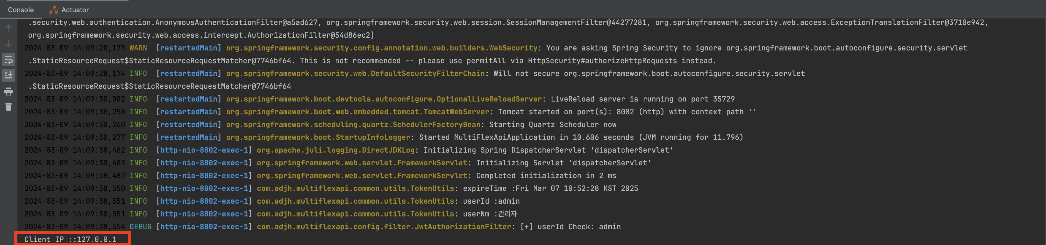 3. 이러한 헤더들 중에서 고객의 IP 주소 정보를 담고 있는 헤더를 찾으면 해당 IP 정보를 clientIp 변수에 저장하고 콘솔에 출력합니다. 만약 모든 헤더를 확인했음에도 IP 정보를 찾지 못하면 마지막으로 request.getRemoteAddr() 메서드를 사용하여 IP 정보를 얻습니다.