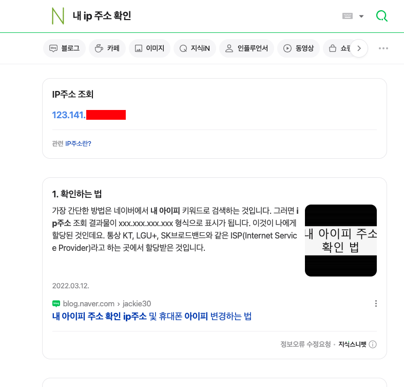 💡 검색 포털 사이트에서 ‘내 아이피 주소’라고 검색을 하면 나오는 값은 무슨 IP를 의미할까?