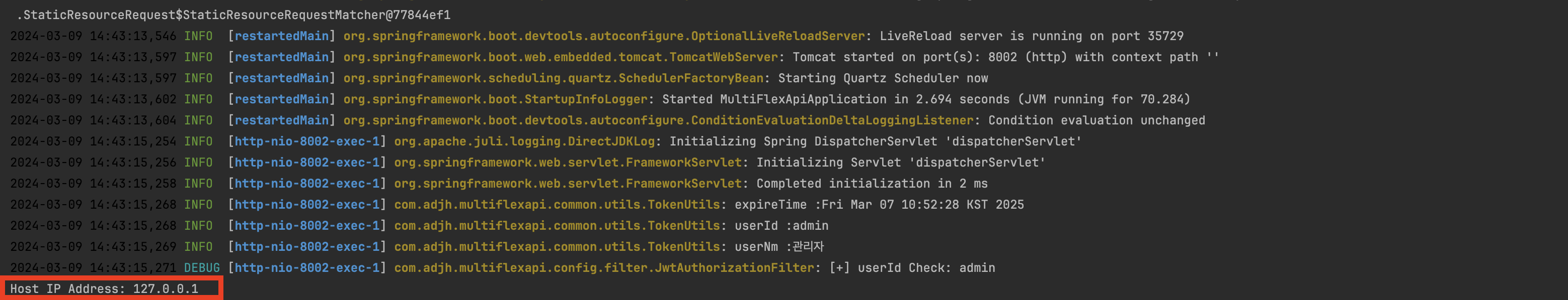 - java.net.InetAddress 패키지 내에서 InetAddress 클래스를 이용하여 내 PC에서 IP 주소를 조회합니다 - .getLocalHost().getHostAddress() 메서드를 통해 실제 내 로컬 호스트 내의 IP 주소를 반환받습니다.