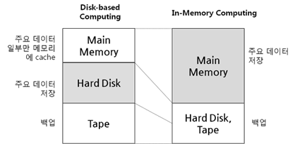 - ‘컴퓨터 메모리’ 내에서 데이터를 저장하고 조작하는 방식입니다. 이는 디스크에 데이터를 저장하고 검색하는 대신 ‘RAM과 같은 메모리에 데이터를 저장’하여 훨씬 빠른 속도로 데이터에 접근할 수 있게 해 줍니다.