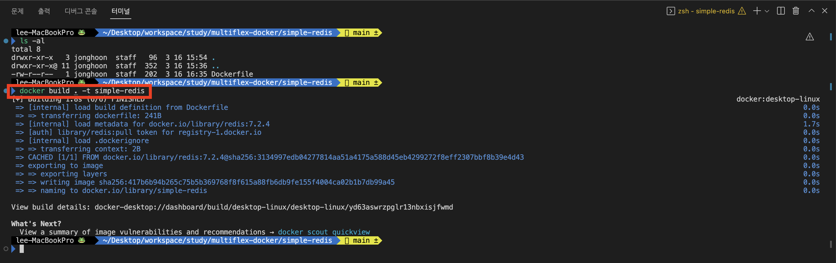 - dockerfile이 존재하는 경로로 접근하여 dockerfile을 빌드합니다.