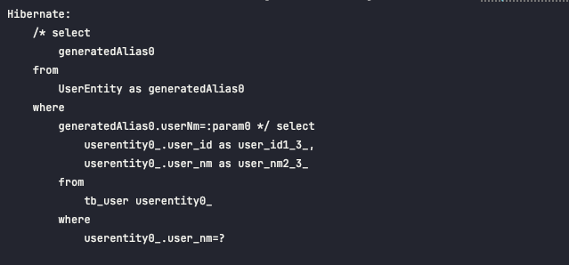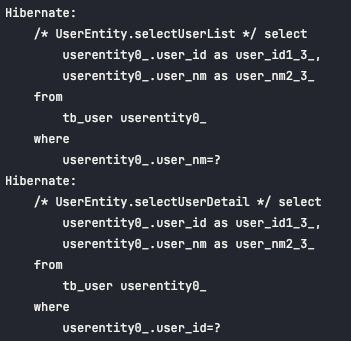 - 아래와 같은 쿼리가 수행됨을 확인하였습니다.