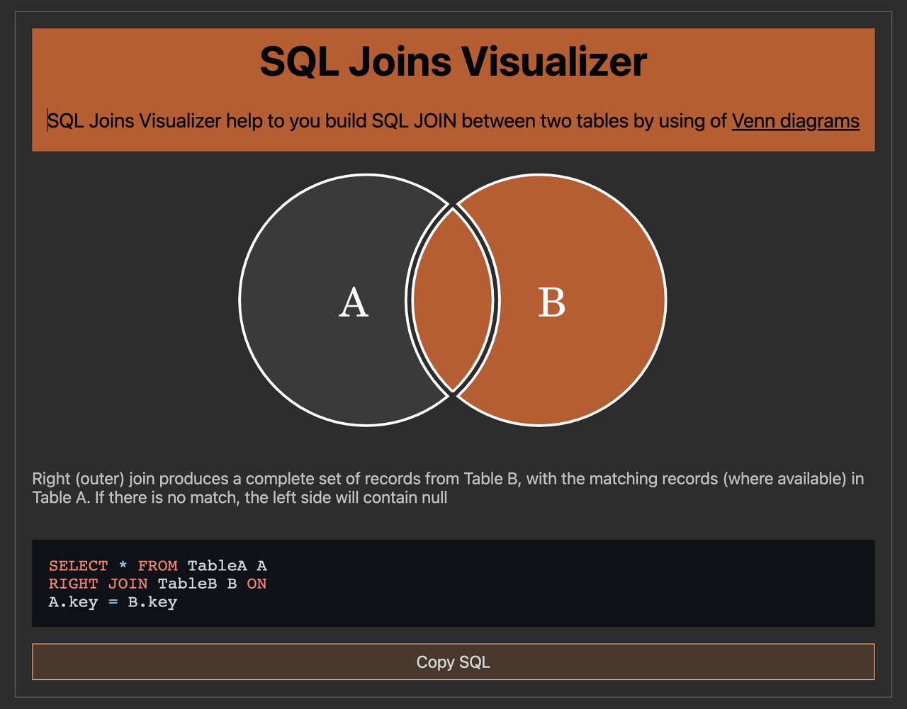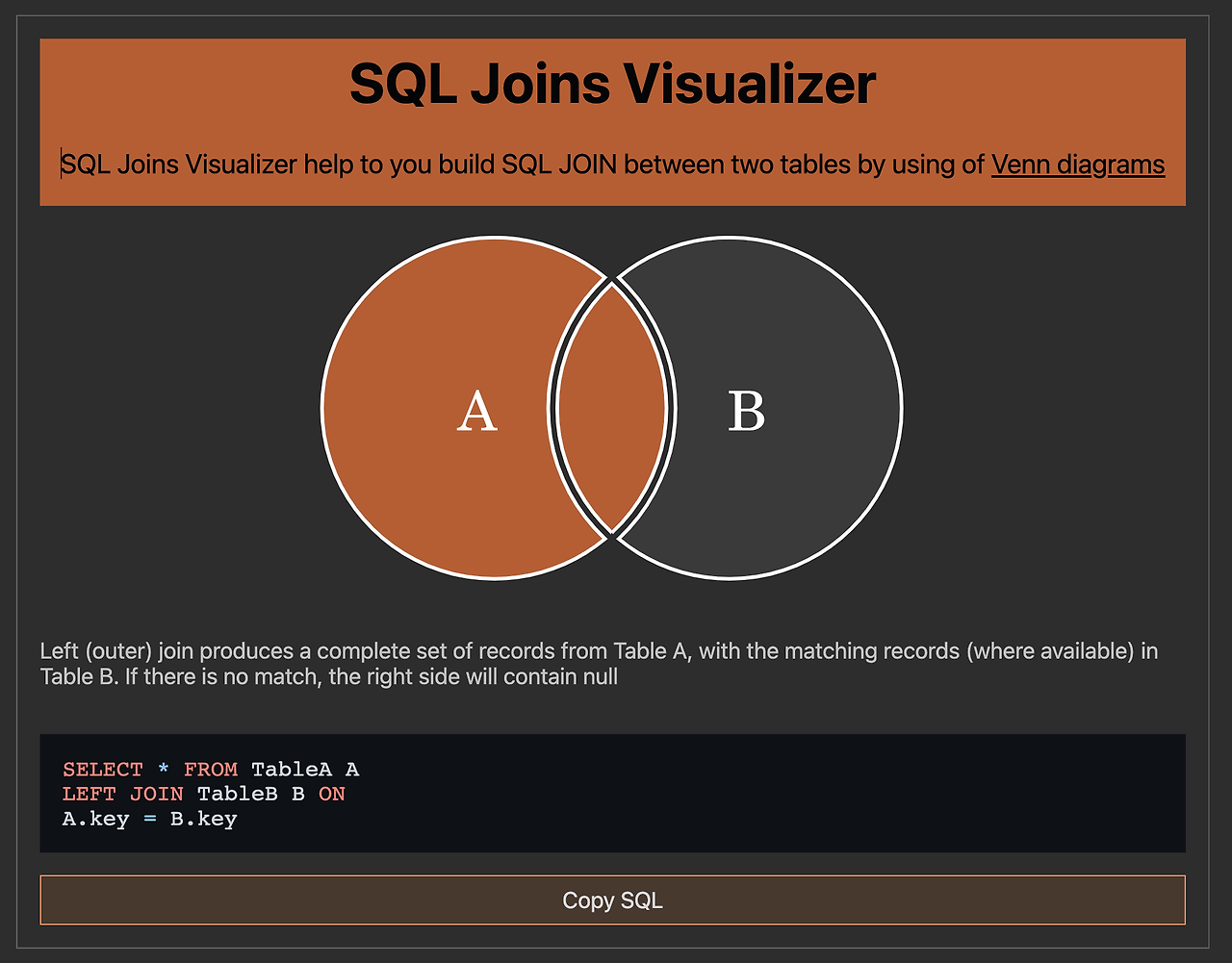- ’ 왼쪽 테이블의 모든 행’과 ‘오른쪽 테이블에서 왼쪽 테이블과 공통된 값’을 가지고 있는 행들을 반환합니다. - 만약 오른쪽 테이블에서 공통된 값을 가지고 있는 행이 없다면 NULL 값을 반환합니다.