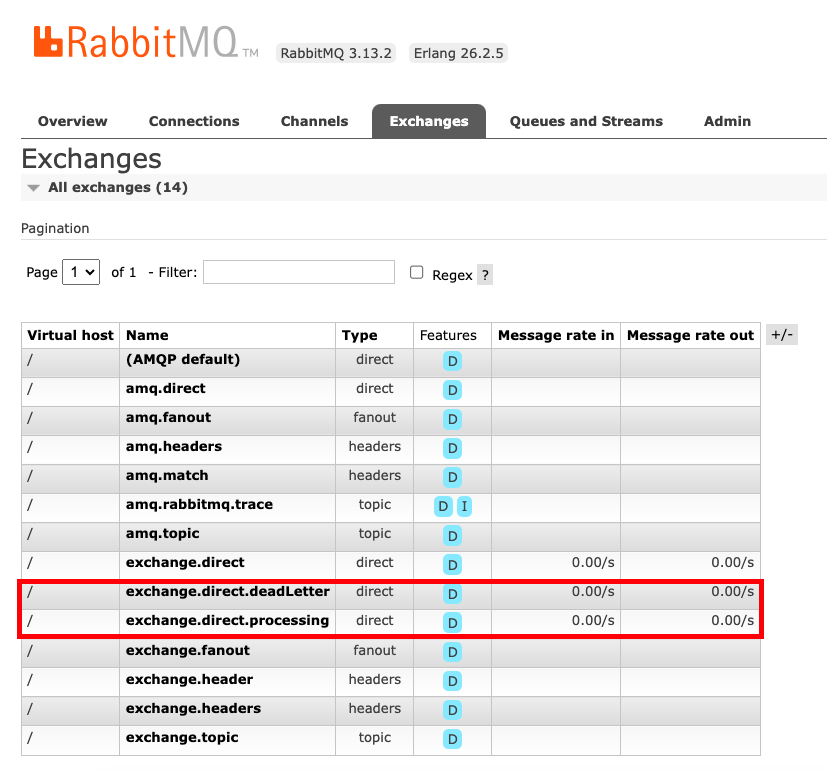 - Direct Exchange 구성 : processingQueue를 라우팅 하는 데 사용