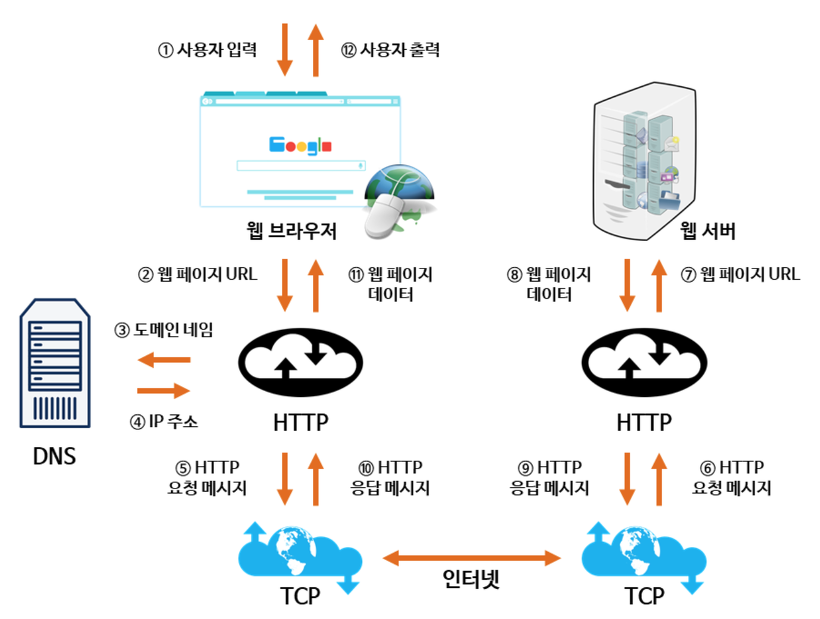💡 HTTP 통신 과정 - 해당 통신 과정은 클라이언트(Web Browser)와 서버(Server)간에 HTTP 데이터 통신을 통해 요청-응답을 하는 과정입니다.