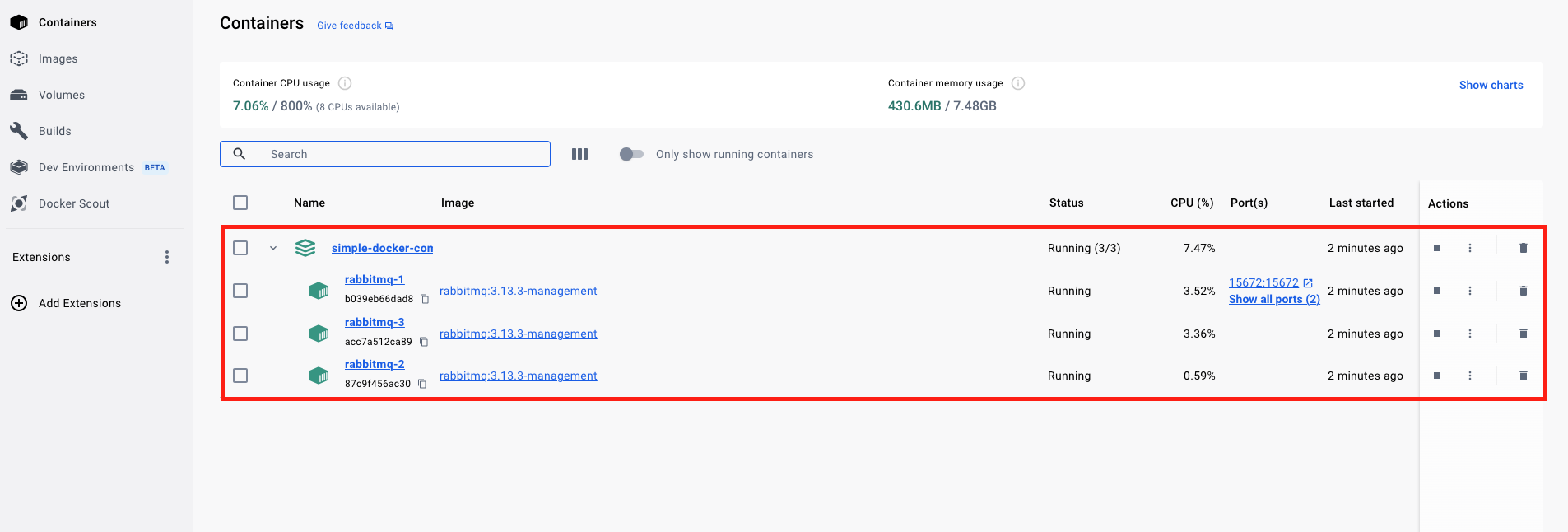 $ docker exec -it rabbitmq-2 rabbitmqctl start_app