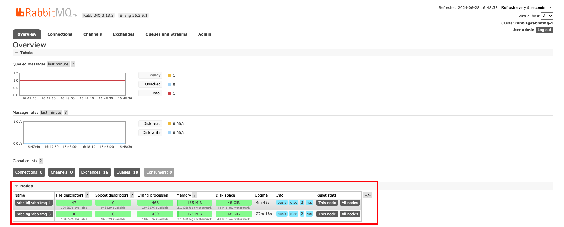 5. RabbitMQ Management 확인