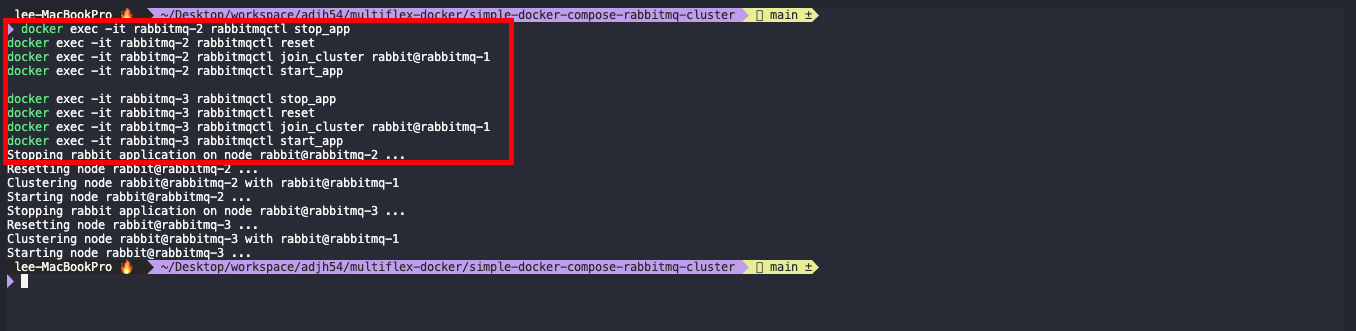 - rabbitmq-2, rabbitmq-3 컨테이너를 rabbitmq-1에 조인합니다.