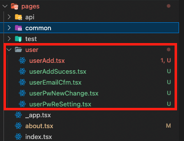 💡 프로젝트의 가장 바깥 폴더인 /pages폴더에서 컴포넌트를 export 하면 폴더명이 페이지 route가 된다.