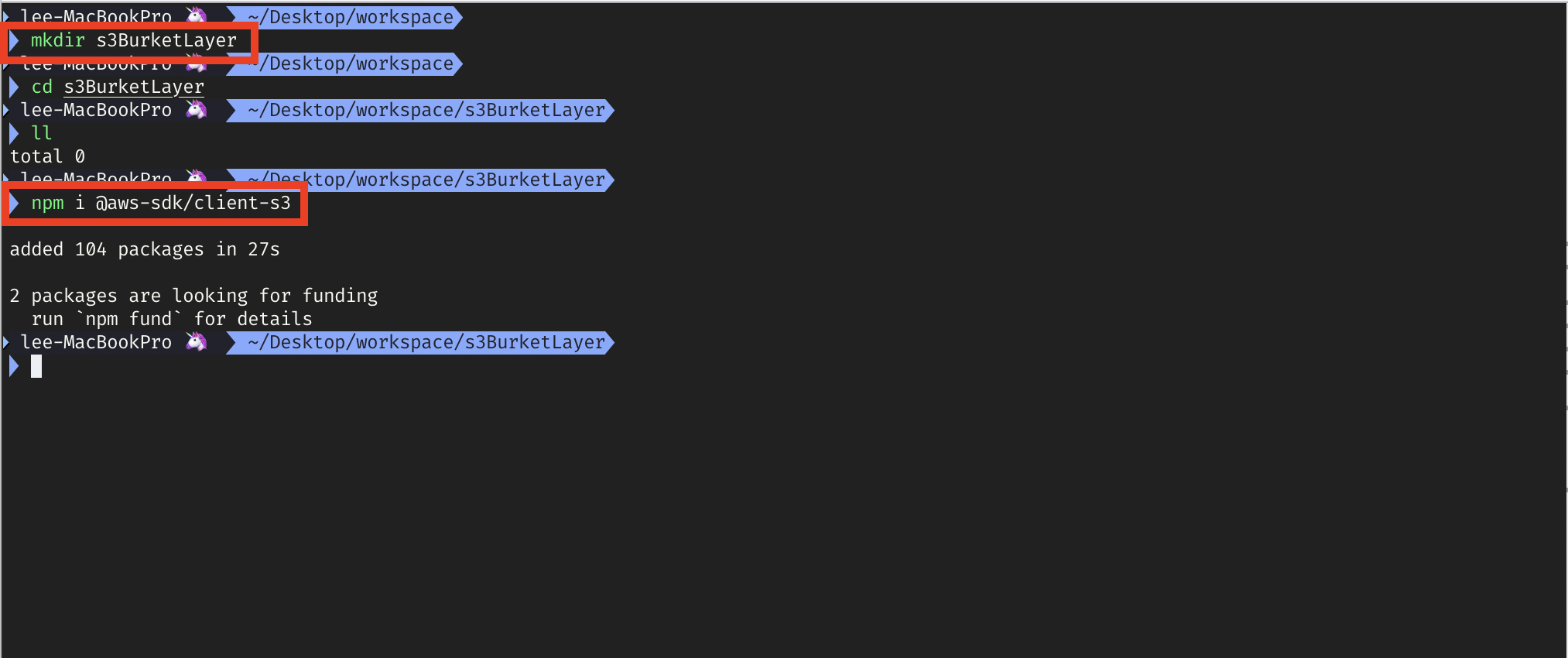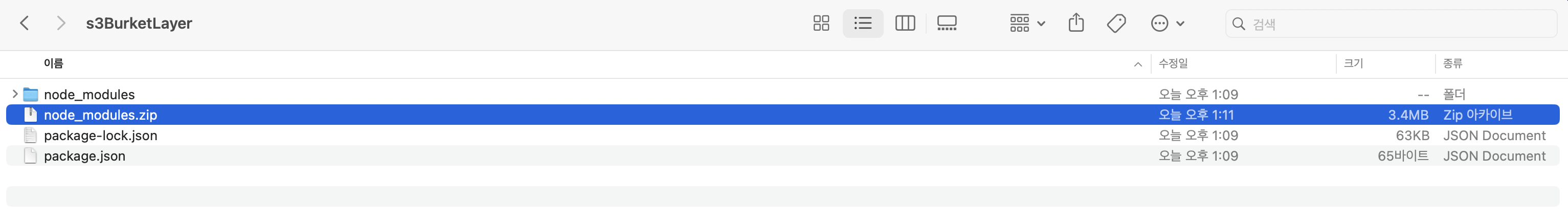 1. Layer 연결을 위해서 사용하려는 @aws-sdk/client-s3의 node_modules 파일을 생성합니다.
