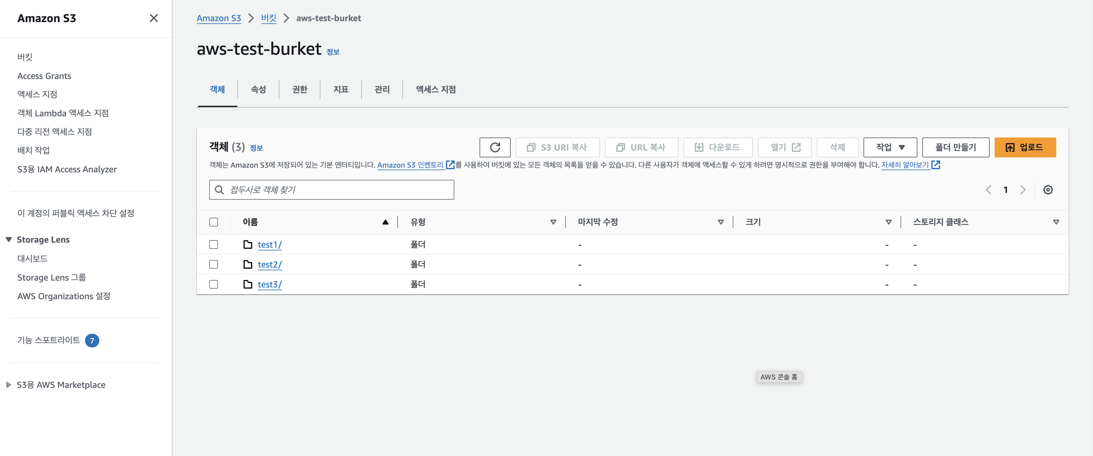 | PutObject | 수정 | S3 버킷에 객체를 업로드합니다. |