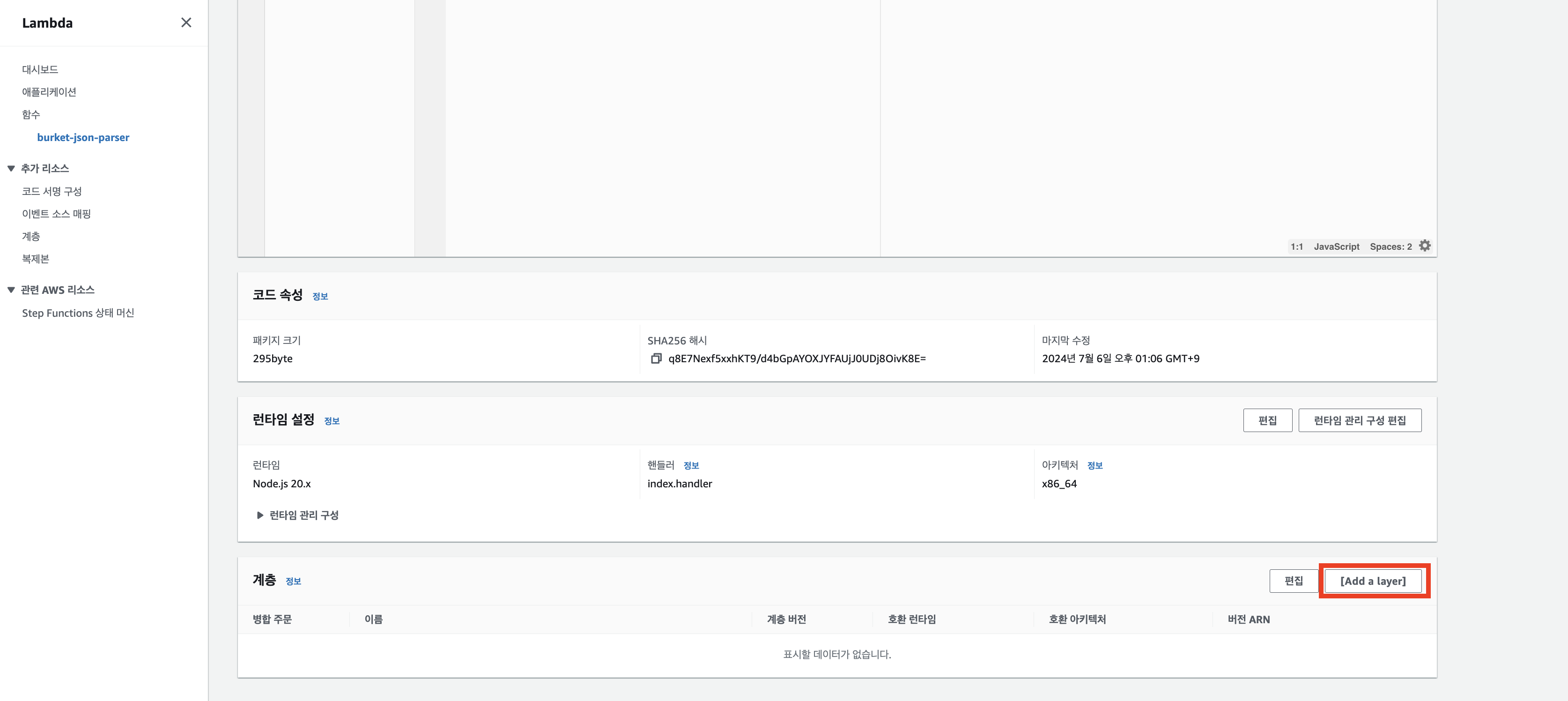4. [Lambda] Add a Layer 버튼을 눌러서 구성한 Layer를 추가합니다.