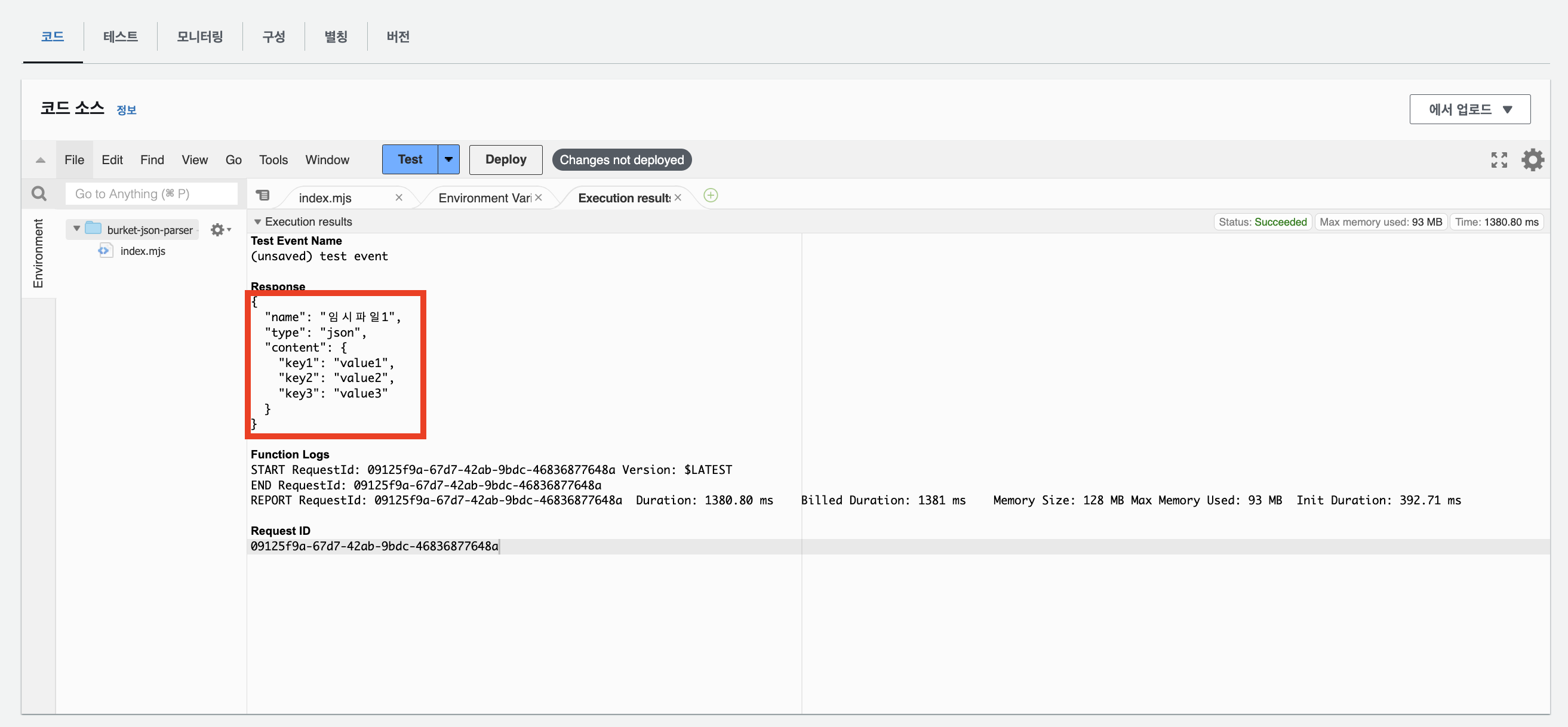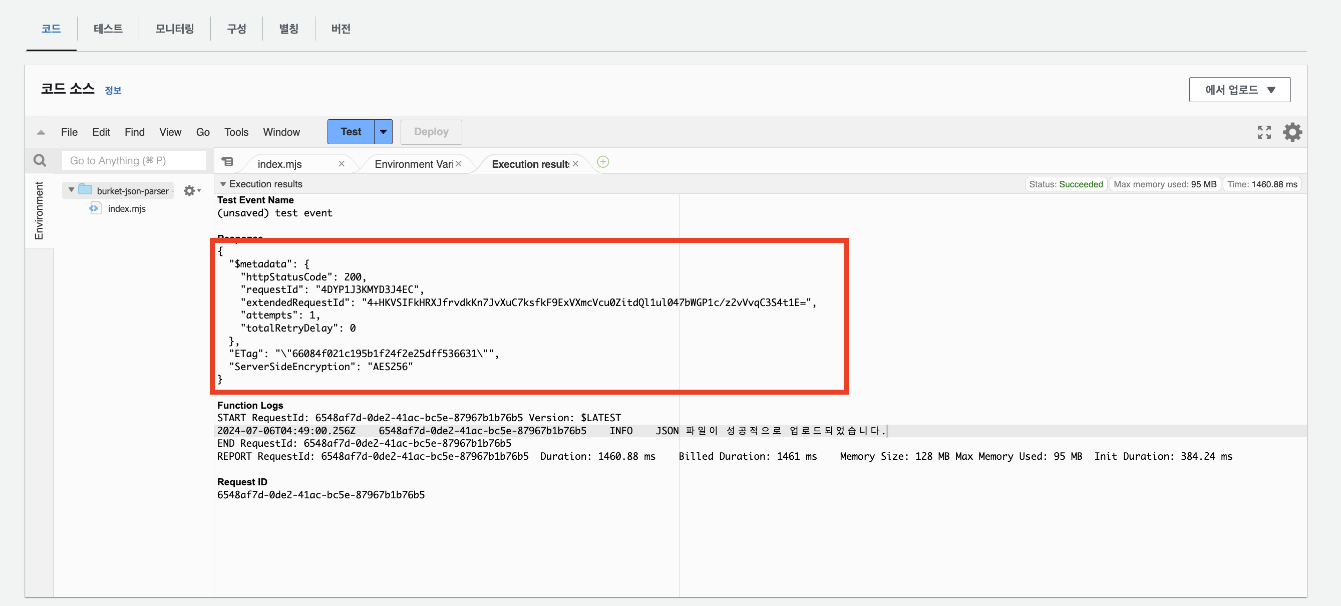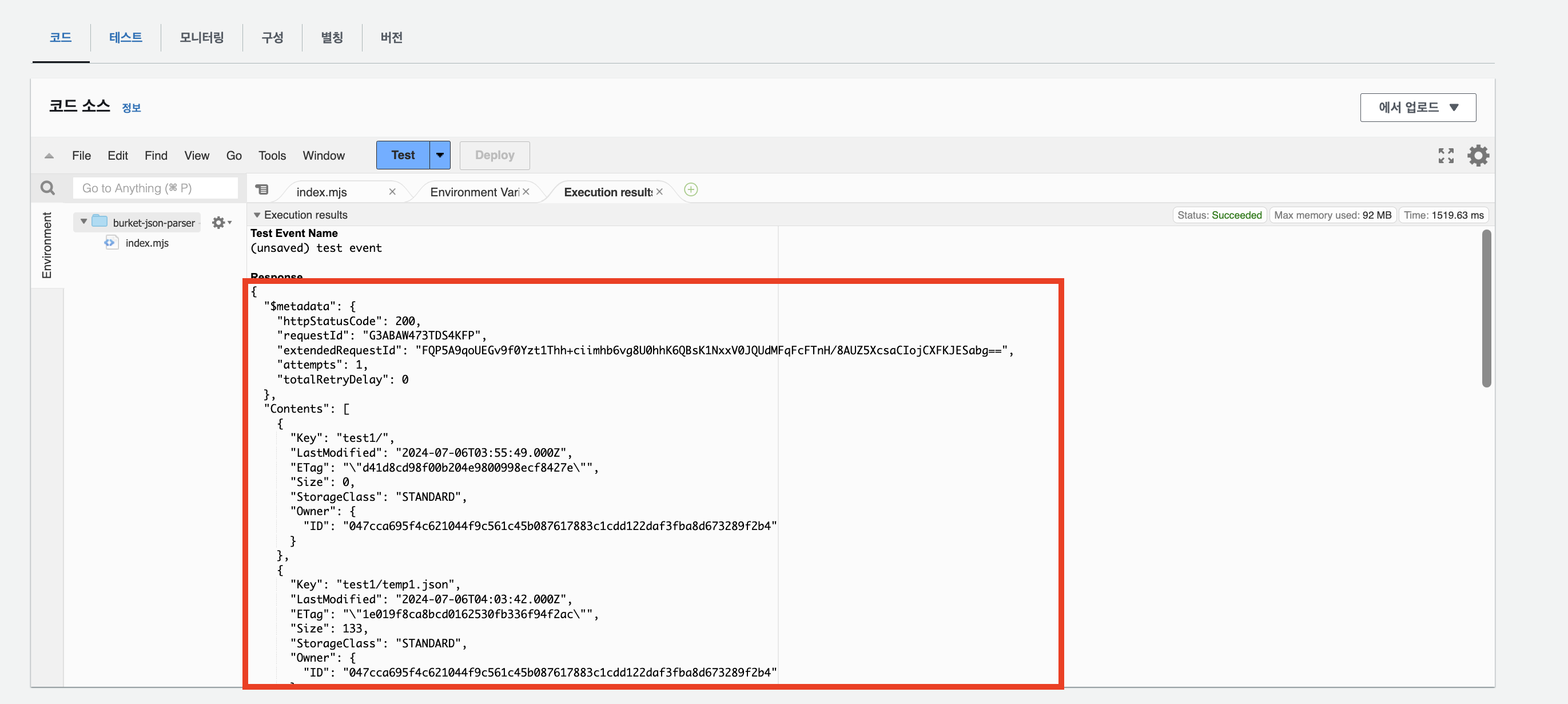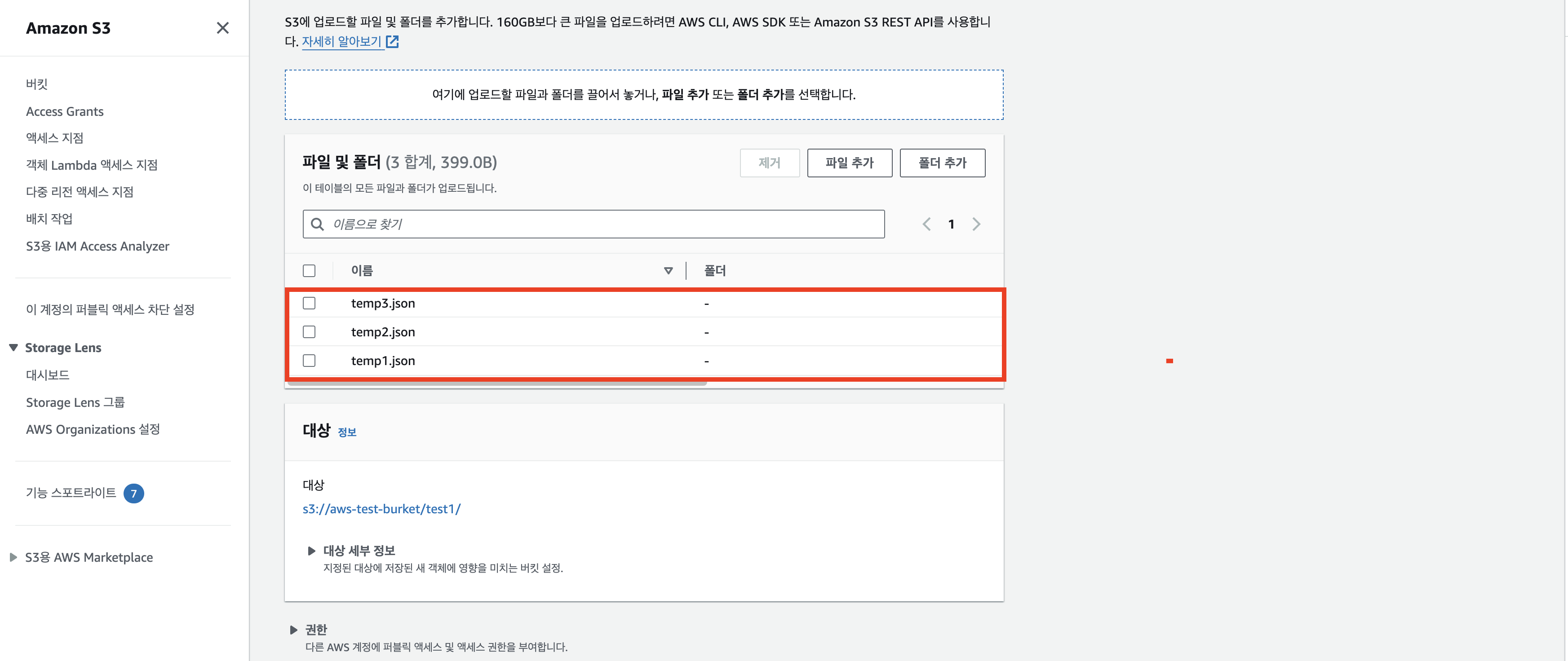 - S3 Burket 내에 json 파일이 추가됨을 확인하였습니다.