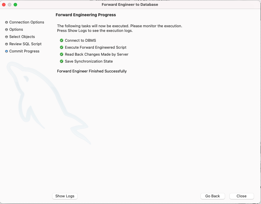 5. [Commit Progress 단계] 실제 수행이 되어 테이블이 구성이 됩니다.