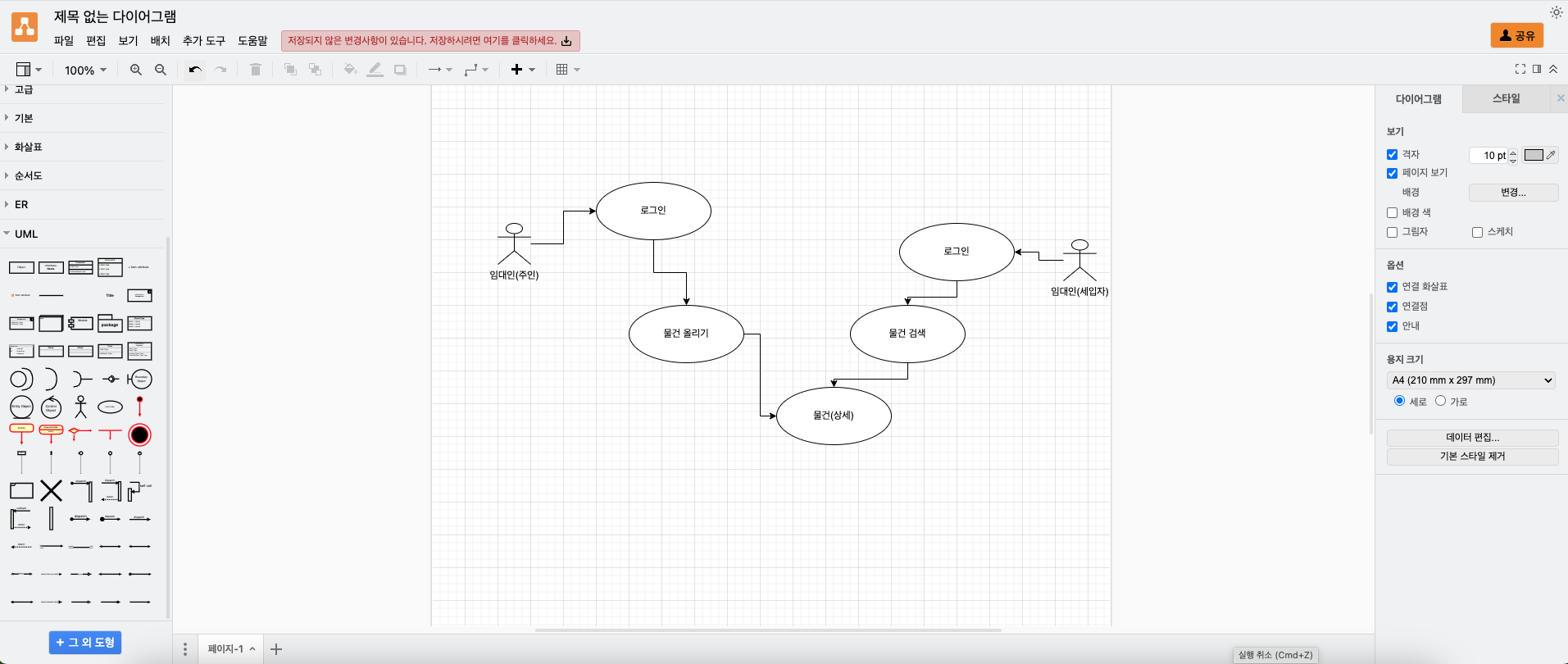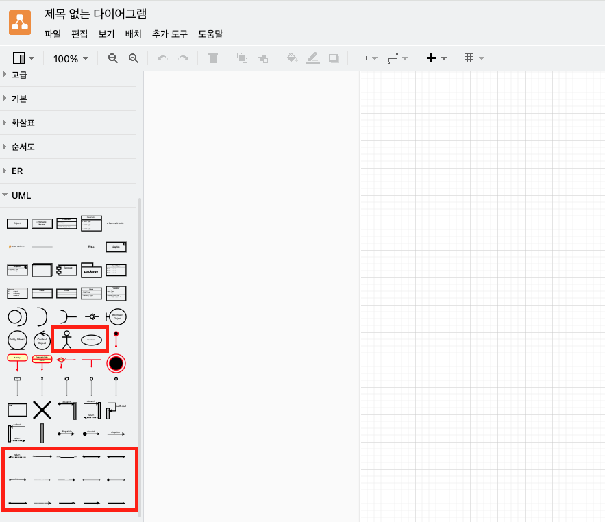 2.3. Draw.io 활용하기 : Draw.io 내에 Usecase Diagram에 대한 요소를 이용하여 그려줍니다.
