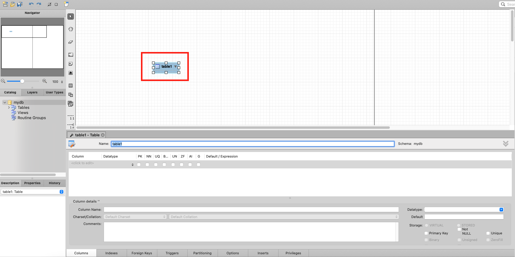 7. 클릭하고 오른쪽에 두면 테이블이 생성되고, 더블 클릭하면 테이블 정보를 구성할 수 있습니다