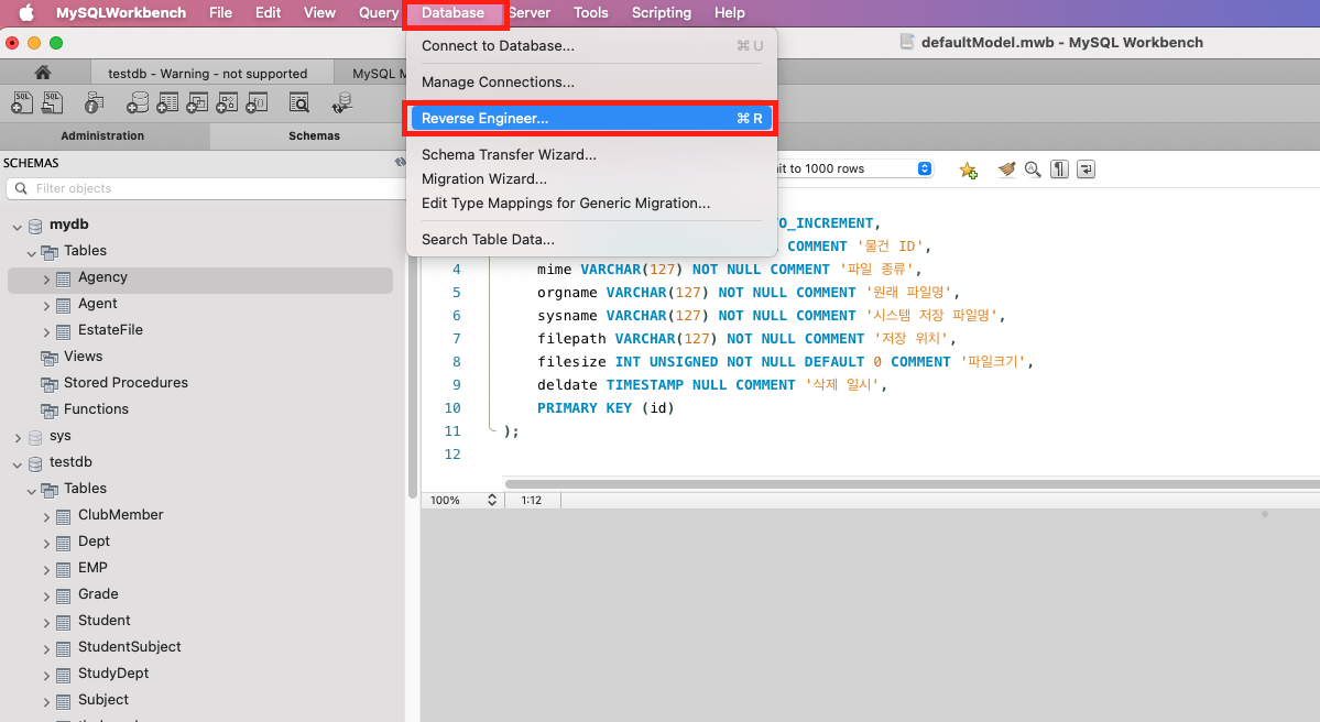 2. Database - Reverse Engineer.. 버튼을 선택합니다.