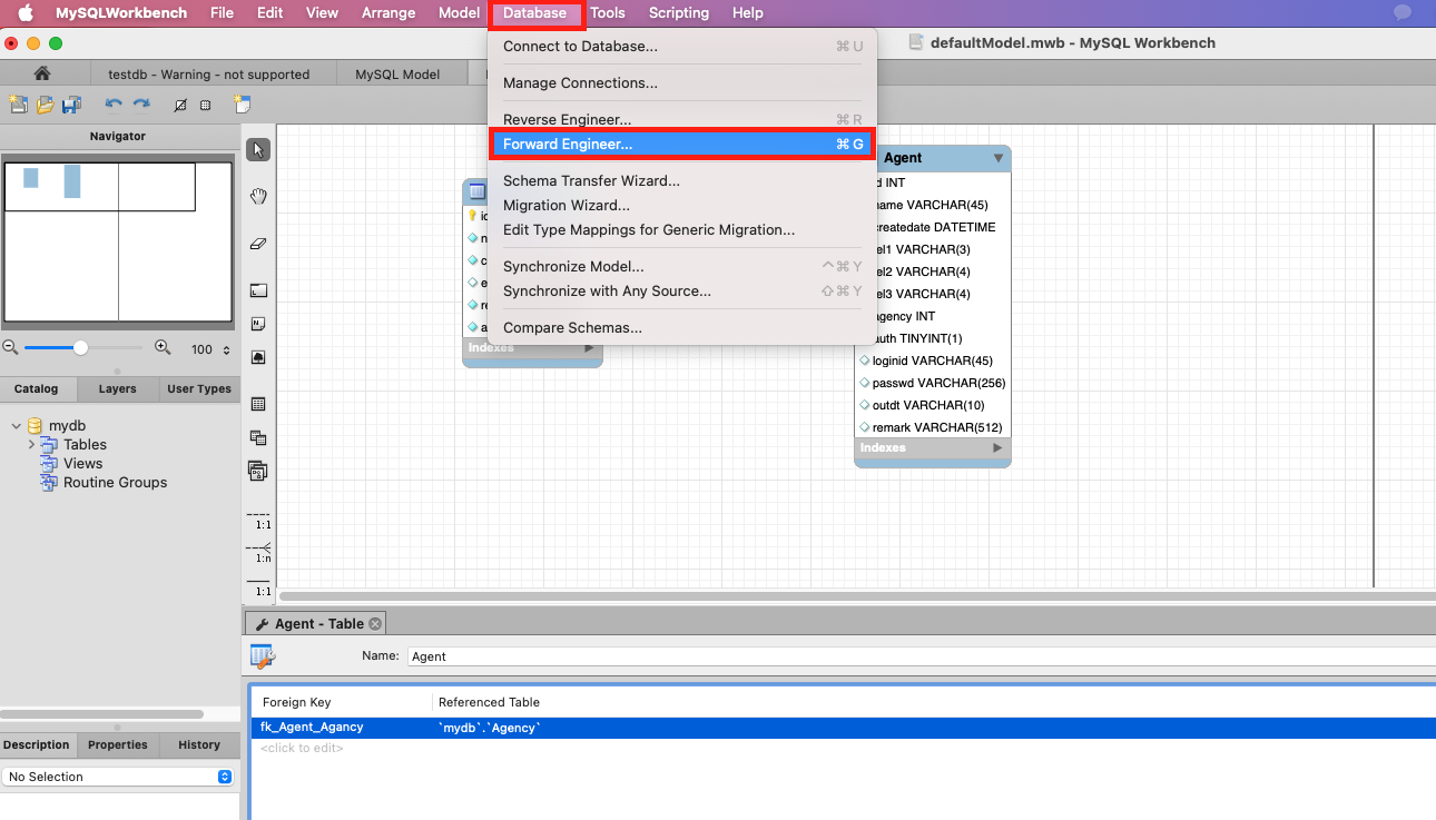 1. Database - Forward Engineer… 버튼을 선택합니다.