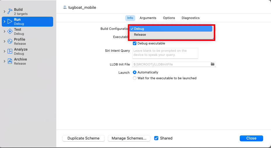 4) Debug / Release 변경 방법 : Product - Scheme - Edit Scheme …