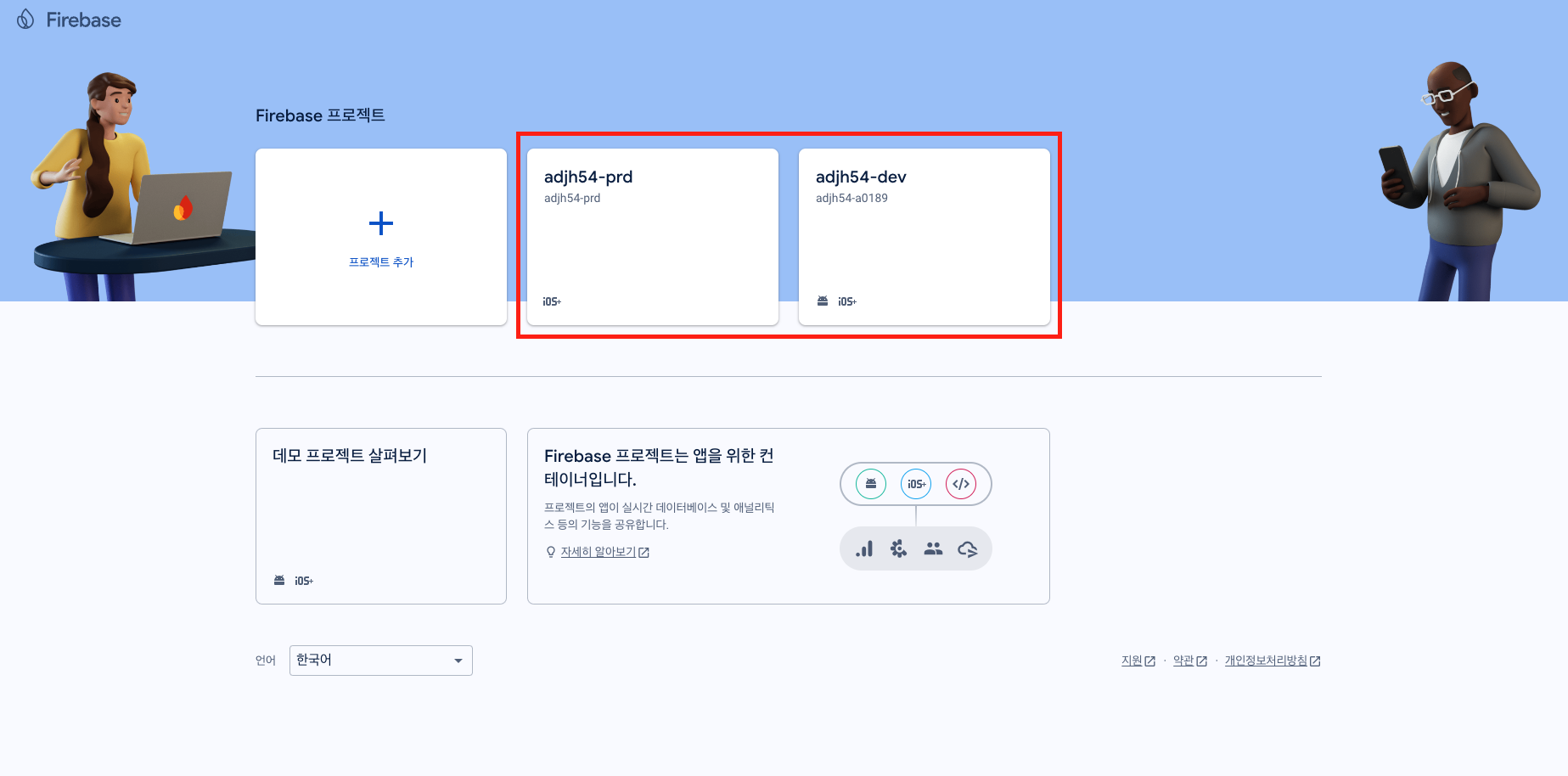 1. 아래와 같이 xxx-dev, xxx-prd라는 프로젝트가 구성되어 있습니다.