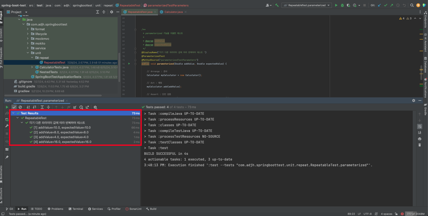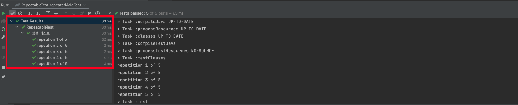 💡 @RepeatedTest 어노테이션을 이용한 결과