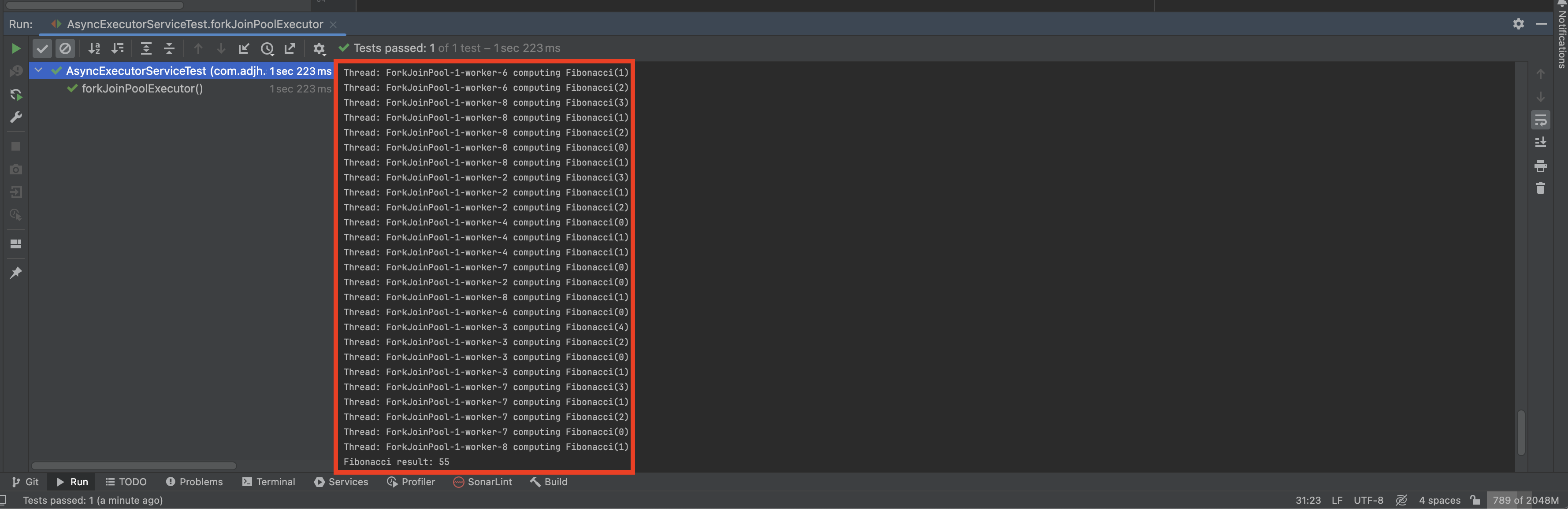 💡 사용 예제 : AsyncExecutorServiceImpl - ForkJoinPool을 사용하여 Fibonacci 작업을 병렬로 계산합니다.