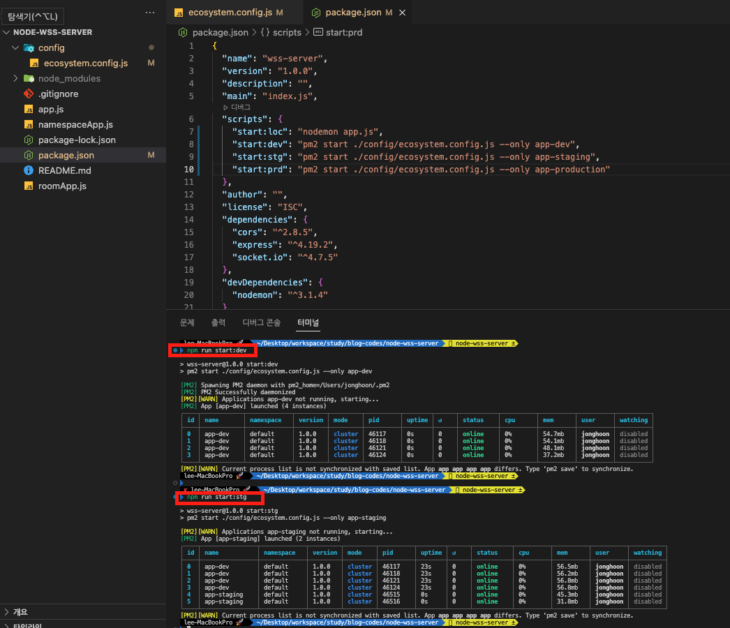 - pm2의 경우는 전역으로 설치하여 pm2 xxx 명령어를 수행할 수 있도록 global로 설치를 해줍니다.