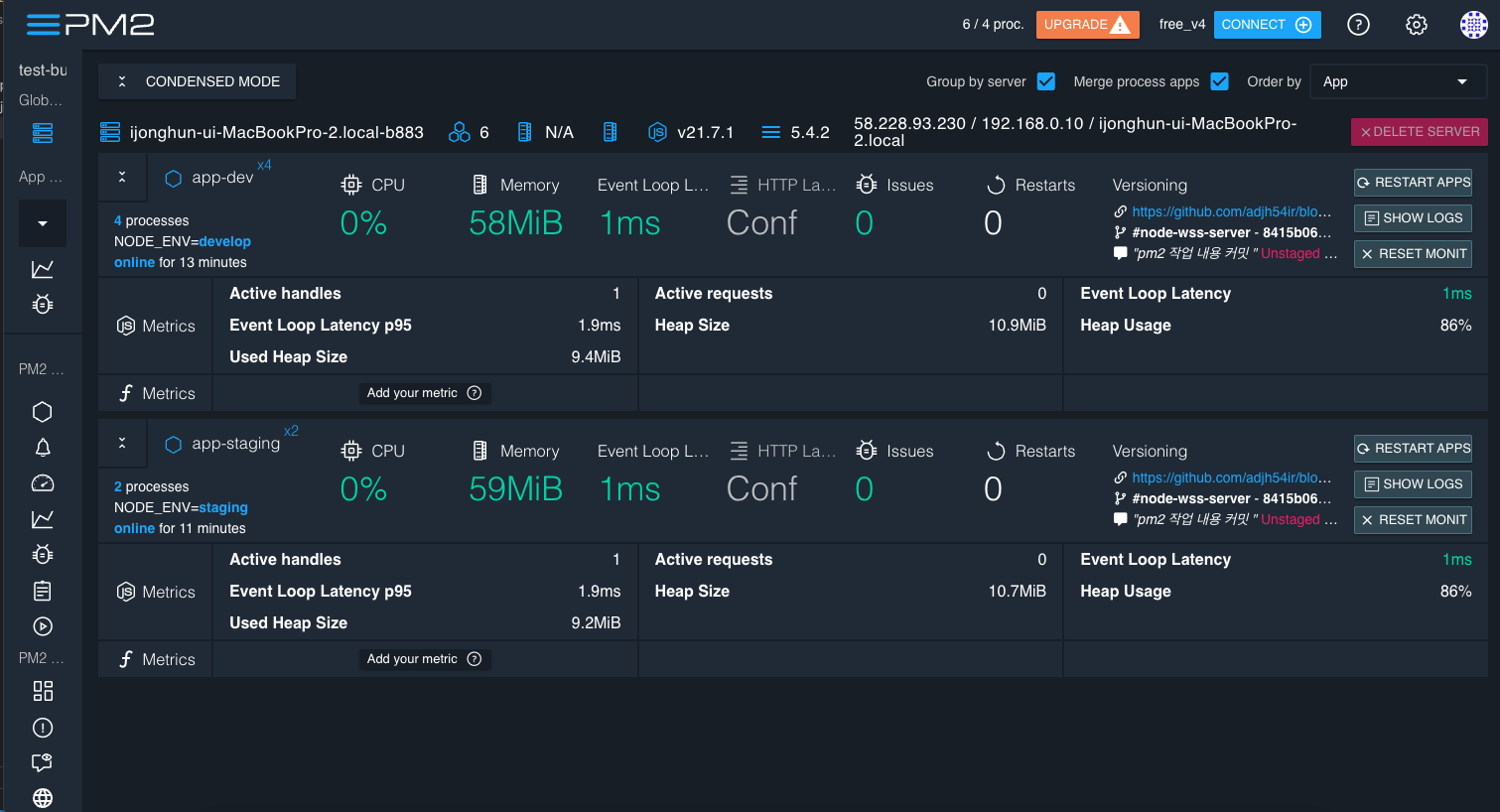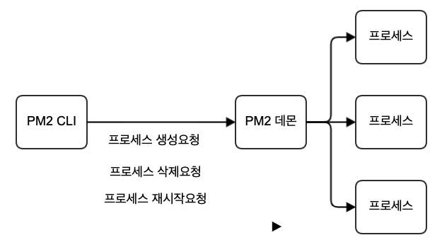 - Node.js 애플리케이션에서 PM2 CLI를 기반으로 PM2 데몬으로 생성, 삭제, 재시작 등의 명령을 수행시킵니다.