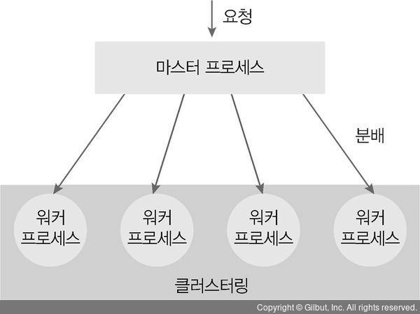 - 마스터 프로세스의 경우는 클러스터 모드에서 워커 프로세스들을 관리하는 ‘중앙 프로세스’입니다. - 즉, 워커 프로세스의 생성, 관리, 재시작을 담당합니다.