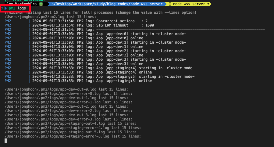 - PM2 설정 파일(ecosystem.config.js)에서 로그 포맷을 지정할 수 있습니다