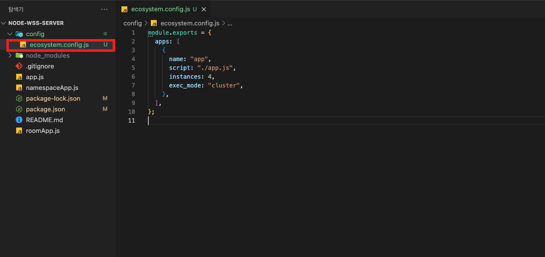 - 클러스터 모드를 각각 파일 별로 관리하기 위한 설정 파일을 의미합니다. 이는 ecosystem.config.js 이름 형태로 관리가 됩니다. - 이를 설정하면 PM2가 클러스터 모드로 애플리케이션을 실행하며, 여러 인스턴스를 생성하여 로드 밸런싱과 성능 향상을 제공합니다.