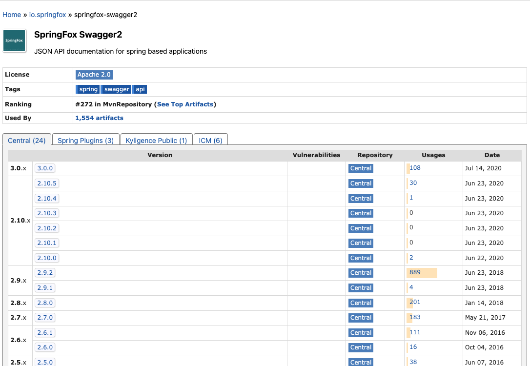 - Spring 기반 애플리케이션용 - 자동 Swagger 2.0 문서 생성 - 최근 업데이트 중단