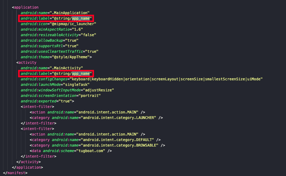 - 해당 파일에서 @string/app_name을 참조하고 있습니다. 그렇기에 string.xml 파일을 찾아서 이를 수정해 줍니다.